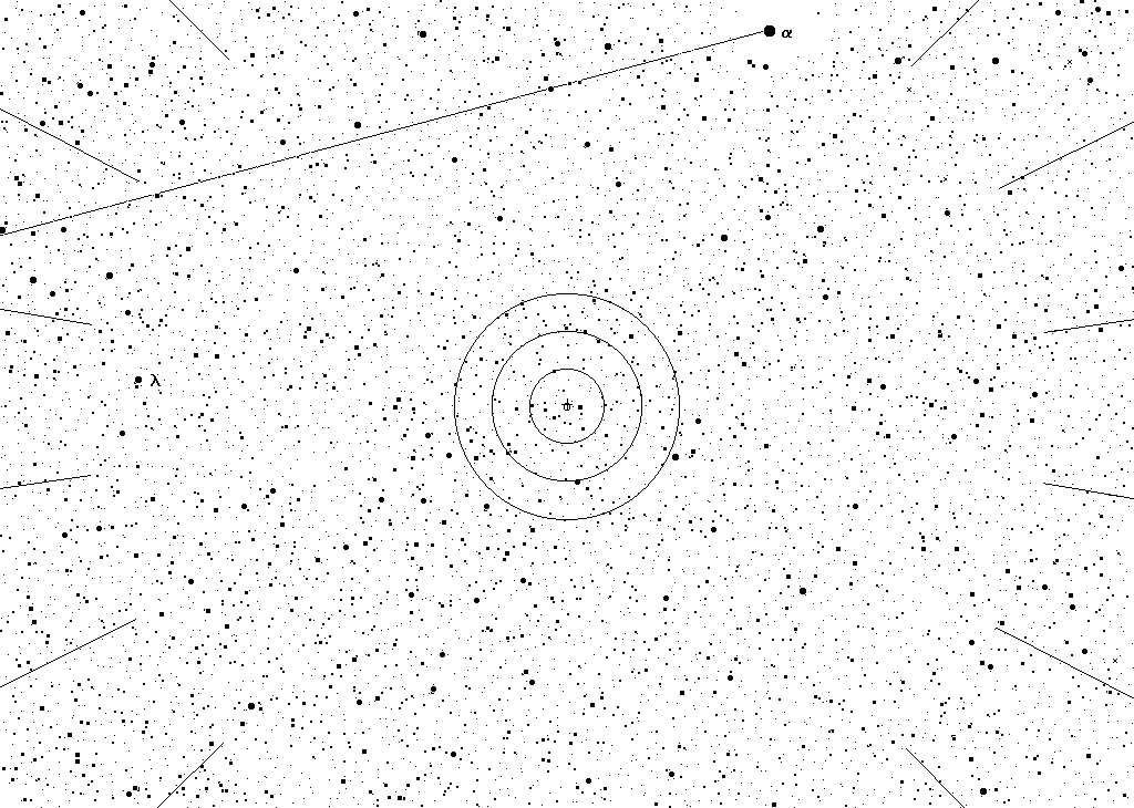 Figure 10 - Proper motion of nearby stars during the last 10,000 years and the solar apex - from Cartes du Ciel |
